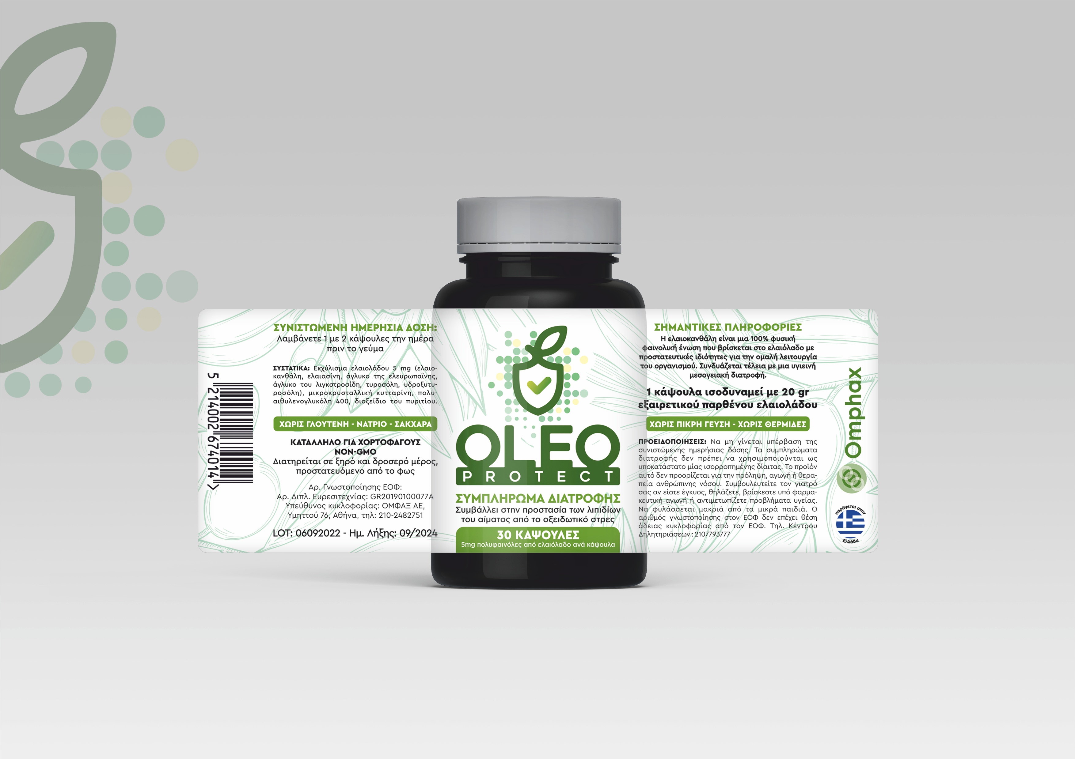 Το OLEOPROTECT είναι το πρώτο παγκοσμίως συμπλήρωμα διατροφής με βάση τα κύρια φαινολικά συστατικά του ελαιολάδου.